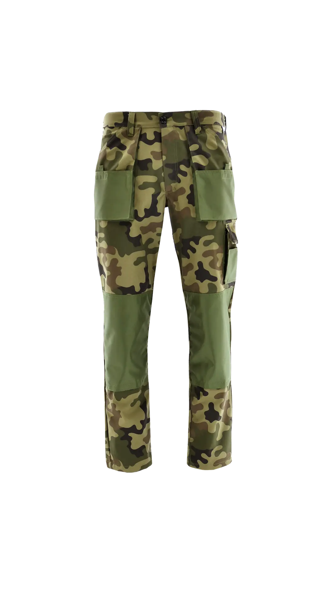 – na lewej nogawce kieszeń kryta patką zapinaną na rzepy