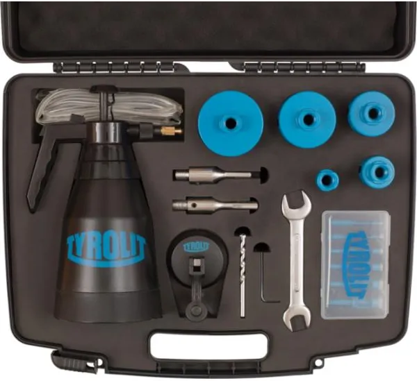 Zestaw do wiercenia w płytkach firmy Tyrolit z serii DDT składa się m.in. z uniwersalnych, lutowanych próżniowo koronek diamentowych zapewniających najwyższy komfort wiercenia.