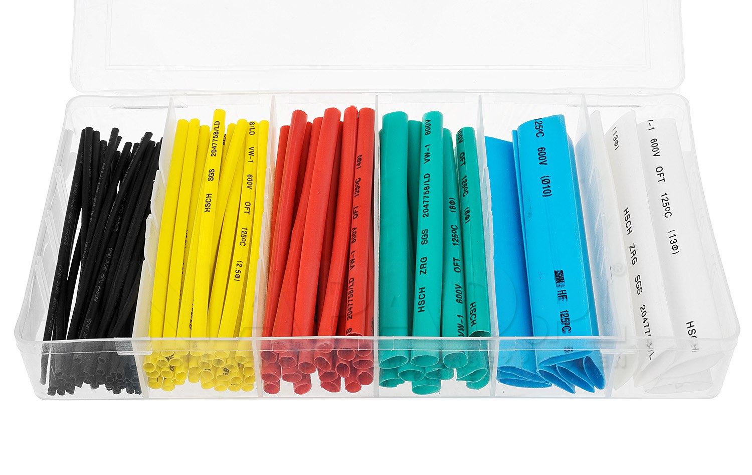 Zestaw rurek termokurczliwych w praktycznym organizerze. Rurki pocięte na długość 100mm (10cm). 6 rozmiarów szerokości.